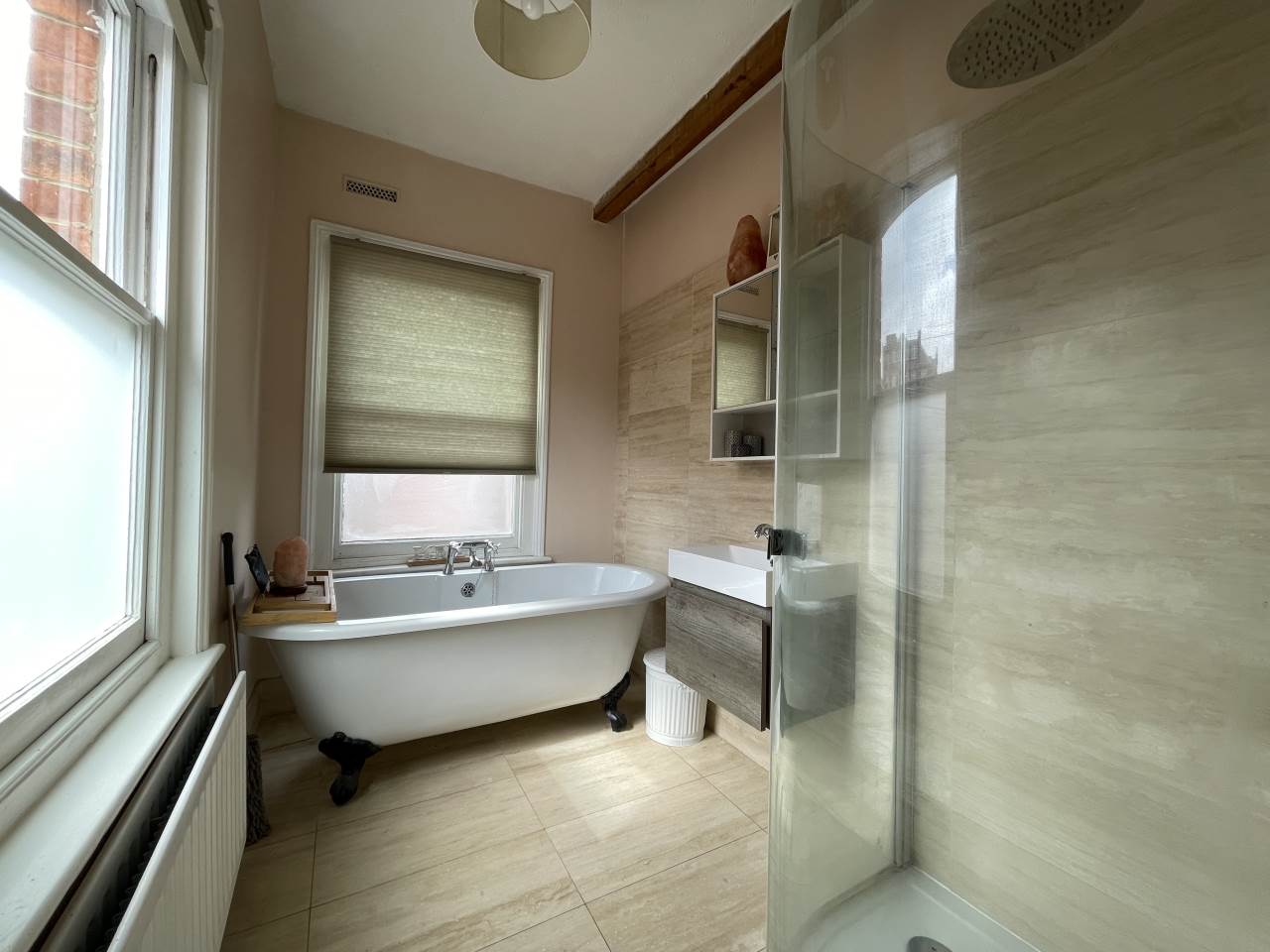 Located in a quiet cul de sac in Tunbridge Wells town centre, this maisonette offers light and spacious accommodation. There are steps up to the front door where the entrance hall leads to the lounge which has a bay window, to the spacious kitchen/breakfast room and down some stairs to a utility room. On the first floor and accessed from the split level stairs, there are 2 double bedrooms and a modern bathroom which has a roll top bath and separate shower. There is also a separate WC.